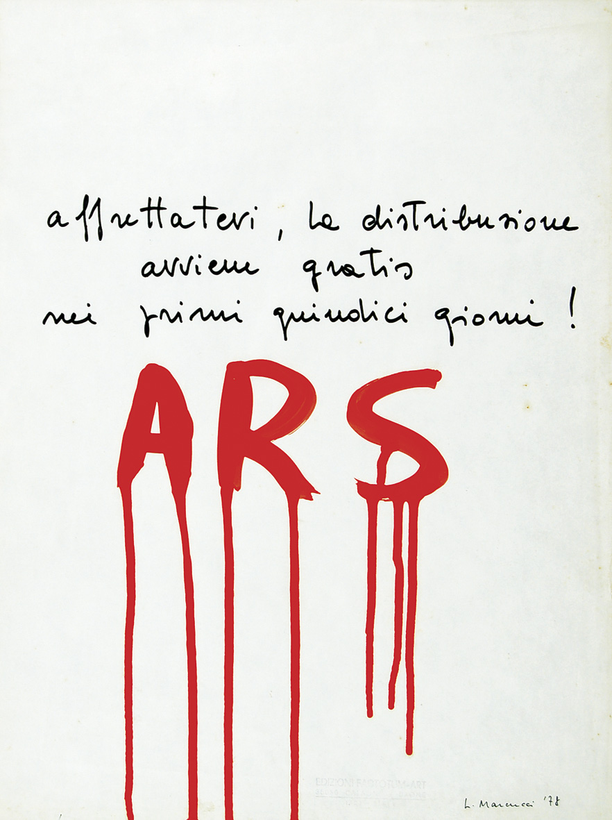 MARCUCCI LUCIA Firenze 1933 Ars 1978 tecnica mista su carta 44x32,5 firma e data in basso a destra "Per parole e immagini tra poesia visiva ed espressioni segniche" Magi Museo d'Arte Pieve di Cento 2007 a cura di Vittoria Coen e relativa pubblicazione a pag. 53