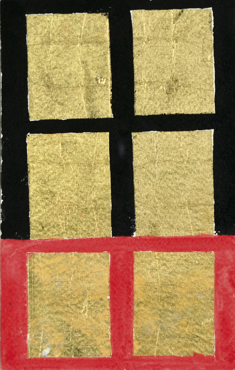 BIANCO REMO Milano 1922 - 1988 Tableau dorè 1980 tecnica mista e collage di foglia d'oro su cartoncino 20,5x13 firma data e dedica ad personam al retro della sorella Lyda Bianchi al retro Eraldo di Vita Mail Art Milano - timbro al retro; certificato di Daniele Squaglia Lucca