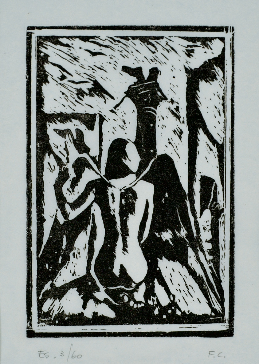 CASORATI FELICE Novara 1886 - Torino 1963 Nudo di schiena e colonna 1949 acquaforte es. 3/60 18,5x12,5(lastra)49x33(foglio) siglata in basso a destra tiratura in basso a sinistra opera facente parte della cartella "Felice Casorati Opera Grafica" Luigi De Tullio editore stampatore Milano timbro a secco Atelier Casorati in basso a sinistra
