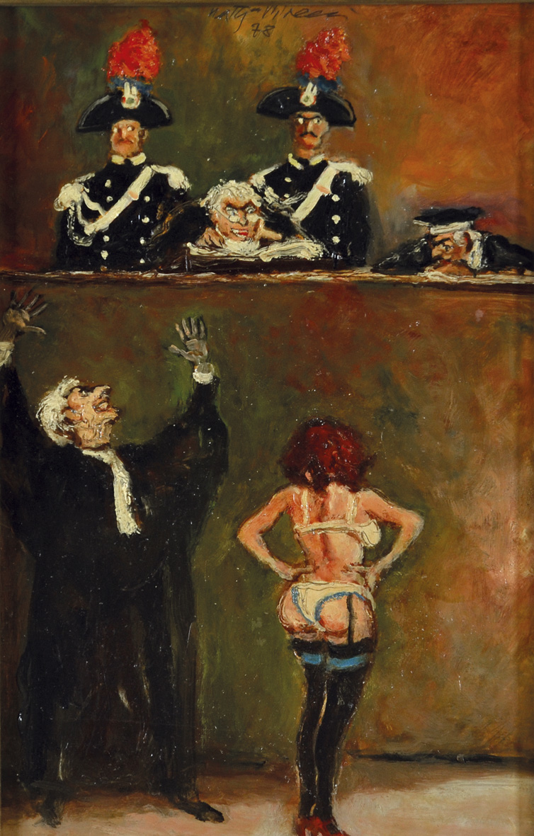 PIACESI WALTER Ascoli Piceno 1929 Perplessità 1978 olio su tavola 30x20 firma e data in alto, firma data titolo e dedica ad personam al retro parere verbale favorevole dell'Archivio Piacesi a cura di Paolo Piacesi Galleria d'Arte Onas Bolzano - timbro al retro