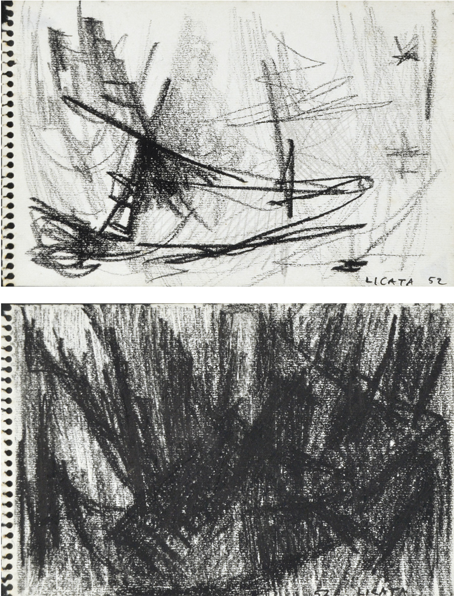 LICATA RICCARDO Torino 1929 - Venezia 2014 Appunti 1952 lotto di 2 tecniche...