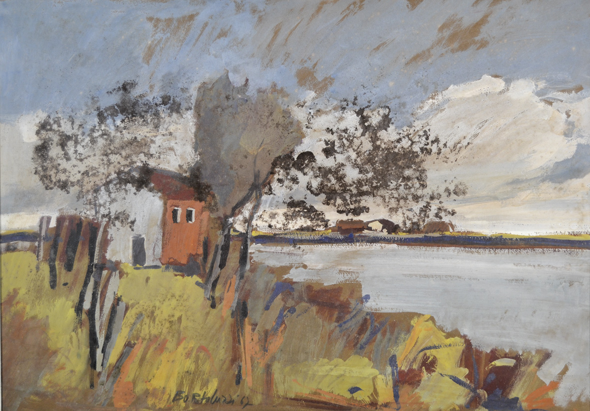BORTOLUZZI MILLO JR. Dolo (Ve) 1938 - 2012 Paesaggio 1967 olio su tavola 50x70 firma e data in basso a sinistra