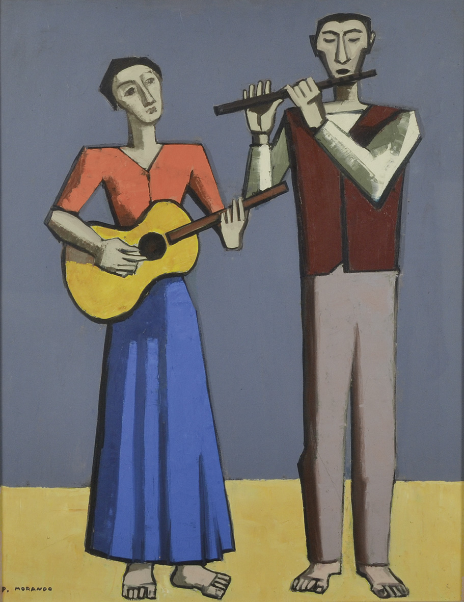 MORANDO PIETRO LUIGI Alessandria 1889 - 1980 Cantastorie 1952 olio su tela 70x55 firma in basso a sinistra firma e data al retro dell'Autore al retro Esposizioni: Galleria d'Arte La Lanterna Alessandria - etichetta al retro