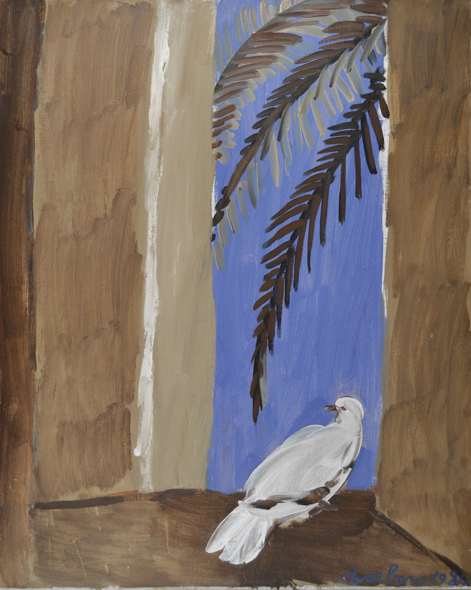 BARBARO SAVERIO Venezia 1924 Colomba finestra palma 1984 olio su tela 81x60 firma e data in basso a destra firma data e titolo al retro