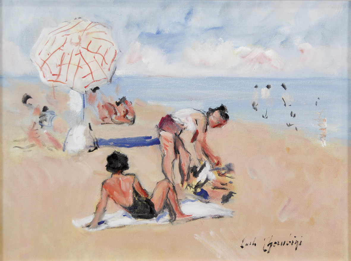 CHERUBINI CARLO Ancona 1897 - Venezia 1978 Spiaggia olio su tela 30x40 firma in basso a destra Esposizioni: Galleria d'Arte Torre Venezia - timbro al retro
