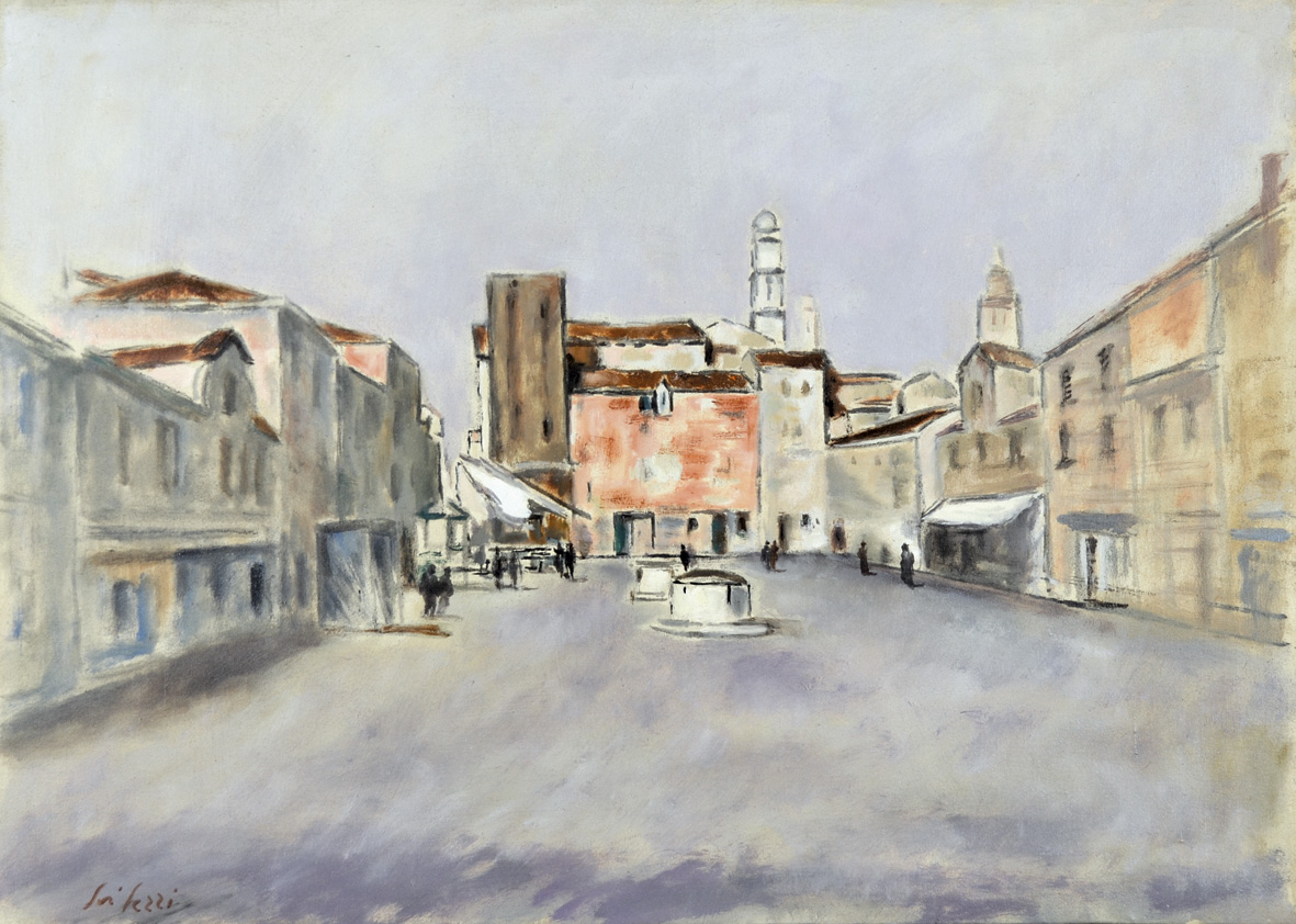 SEIBEZZI FIORAVANTE Venezia 1906 - 1975 Campo Santa Margherita olio su tela...