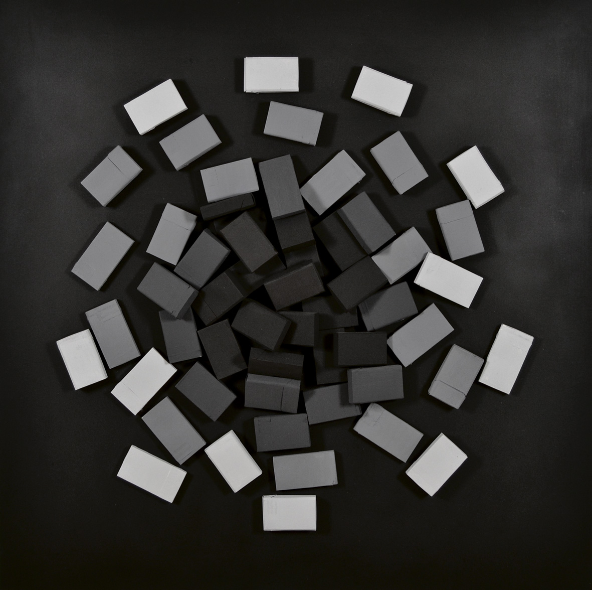 ARDOVINO ROBERTO Milano 1952 Vittoria sul desiderio 1983/2006 tecnica mista e assemblaggio in rilievo su tela 100x100 firma data e titolo al retro Autentica dell'Autore su foto