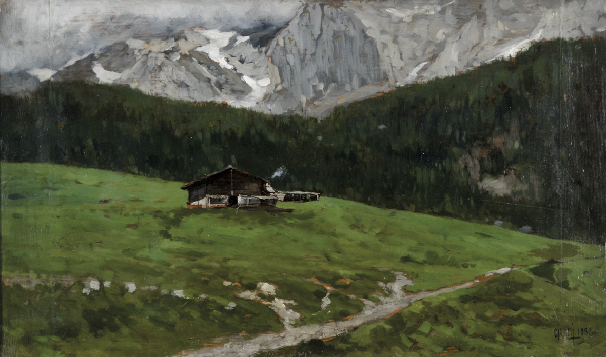 CIARDI GUGLIELMO Venezia 1842 - 1917 Fondo valle 1887 olio su tavola 30x51...