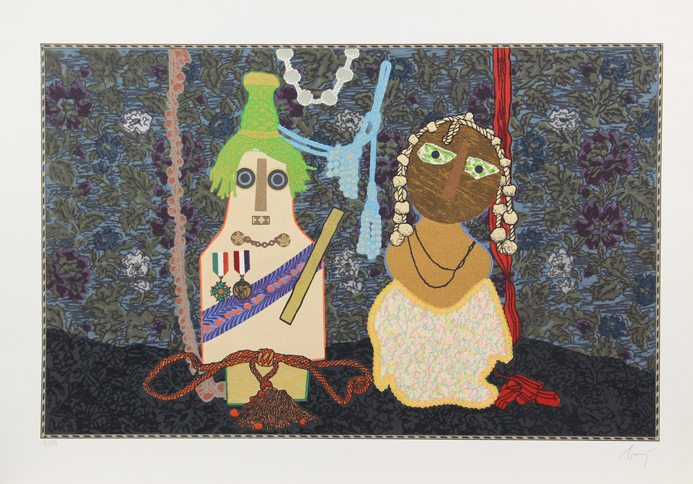 Enrico Baj, Senza titolo, serigrafia materica su carta, cm. 70x100, es. 12/199, firmata in basso a destra, timbro a secco in basso a sinistra, senza cornice