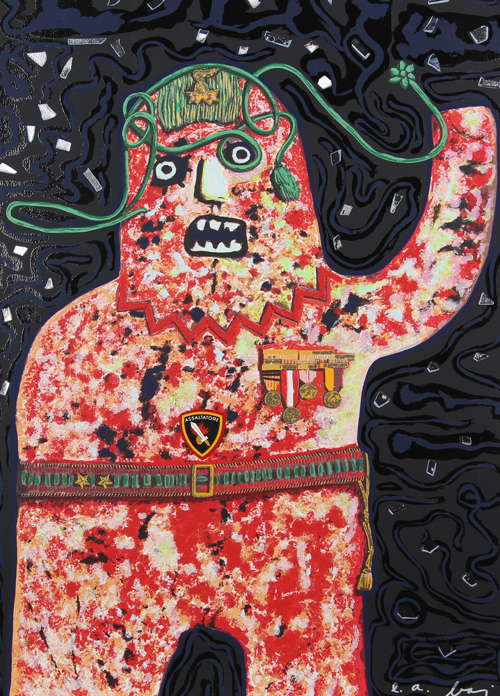 Enrico Baj, Generale, serigrafia e applicazioni su carta, cm. 100x70, es. E.A., firmata in basso a destra, senza cornice