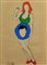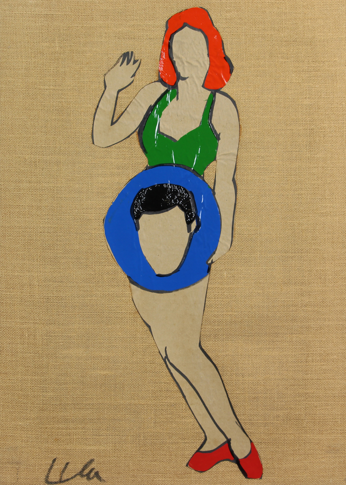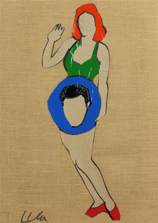 Marco Lodola, Senza titolo, 2000, carta dipinta applicata su tela grezza, cm. 70x50, firmata in basso a sinistra, datata al retro del telaio, certificato di autenticità dell'artista su fotografia, senza cornice