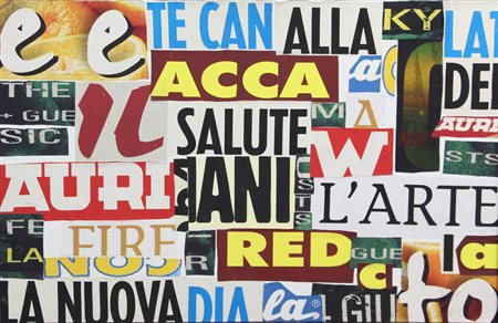 Lucia Marcucci, Viva l'Arte - W l'Arte, 2007, collage di tela stampata, cm. 60x90, firmato, intitolato e datato al retro, certificati di autenticità dell'artista su fotografia