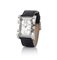 C. rettangolare arcuata in acciaio con fondello chiuso da viti, grandi anse mobili a goccia. Q. argentato con indici applicati e smaltati, numeri arabi in brillanti, data al 4 e secondi al centro. M. a carica automatica. Quadrante, cassa e movimento firmati. Completo di cinturino e fibbia in acciaio originali.
