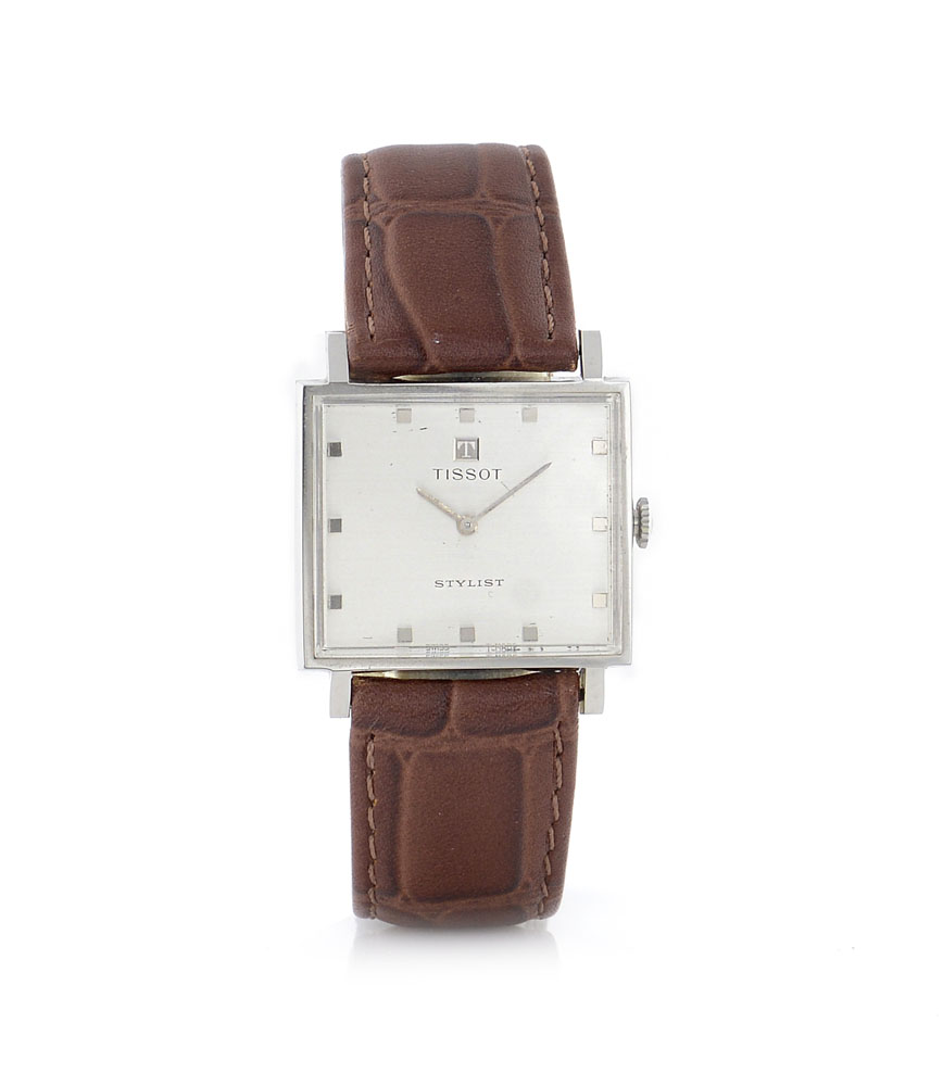 TISSOT TISSOT STYLIST ANNI '60.C. rettangolare in acciaio. Q. argentato con...