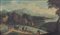 PITTORE DEL XVIII SECOLO Paesaggio fluviale con figureOlio su tela, cm 36x61.