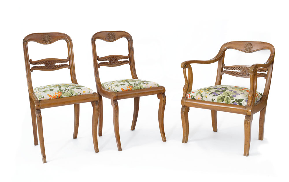 MOBILE DEL XIX SECOLO UNA POLTRONA E DUE SEDIE IN NOCE, XIX SECOLO, poltrona...