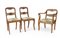 UNA POLTRONA E DUE SEDIE IN NOCE, XIX SECOLO, poltrona con braccioli a cigno; mancanze e usure. Cm 54x45 alt.74 e 43x38 alt.84.