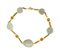COLLANA. In oro giallo 18 kt con settori a cinque fili di maglia groumette intervallati da boules traforate e grandi sassi di acquamarine, chiusura a moschettone.