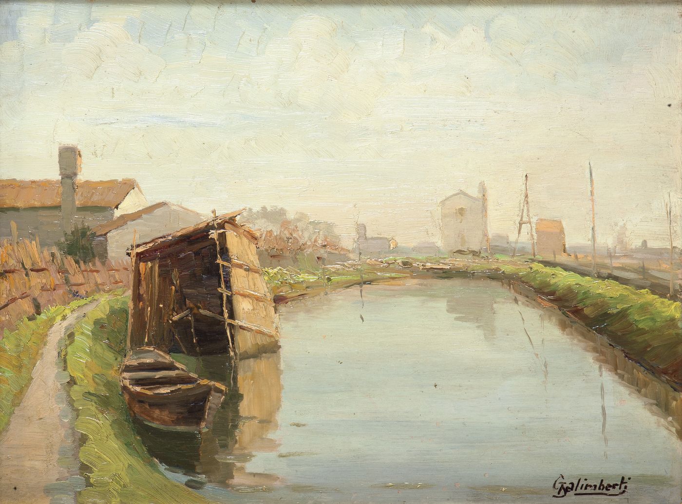 GALIMBERTI DARIO (Chioggia 1881- 1966) - "La Cavana" , 35X45 olio su...