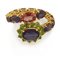 ANELLO ETERNEL. In oro giallo 18 kt, montatura rigida con settore superiore realizzato a fiore, tormalina taglio ovale, peridoti taglio rotondo e cianiti taglio ovale e goccia a decoro.