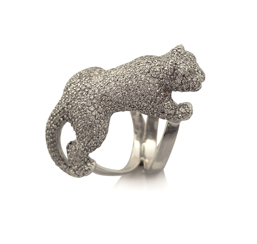 ANELLO ANELLO. In oro bianco 18 kt raffigurante pantera interamente in...