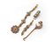 Gr 19,00; dim. ciondoli cm 12x2,3 - 5,4x0,9 - 7,8x1,8; dim. spilla cm 3,2x1.