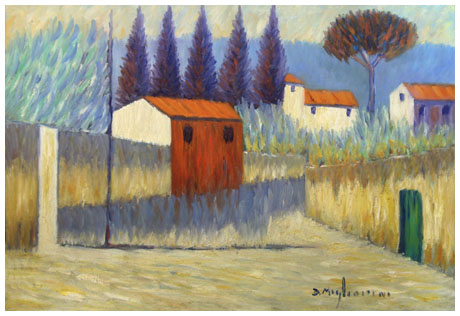 DINO MIGLIORINI Rignano sull'Arno 1907 - Contea 2005 Senza titolo Olio su faesite 50 x 70. Firma in b. a d.; sul verso firma + scritta di autentica. Base d'asta: 100