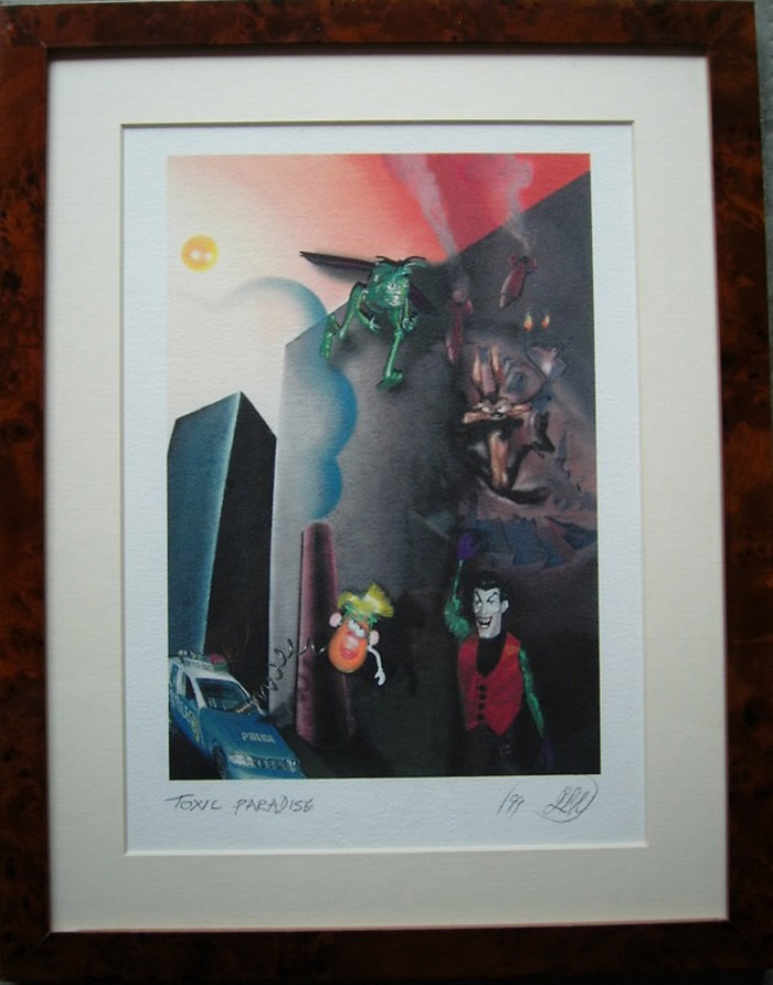 Shalom Neuman "Toxic Paradise" Stampa digitale acquerellata a mano dall'artista cm 30x20 Certificato Artantide.com