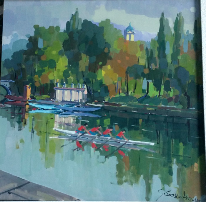 ..Anonimo (firma indecifrabile).Paesaggio Torinese , Olio su tela cm 60x60
