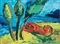 Mimmo Germanà Catania 1944 - 1992 Tre alberi, 1989 Olio su tela, cm. 50x70 Firma, data e titolo al verso sulla tela: M. Germanà / 1989 / "Tre alberi". Certificato su foto Archivio Mimmo Germanà, a cura della Galleria d'Arte L'Acquario, Giulianova, con n. AD/92.