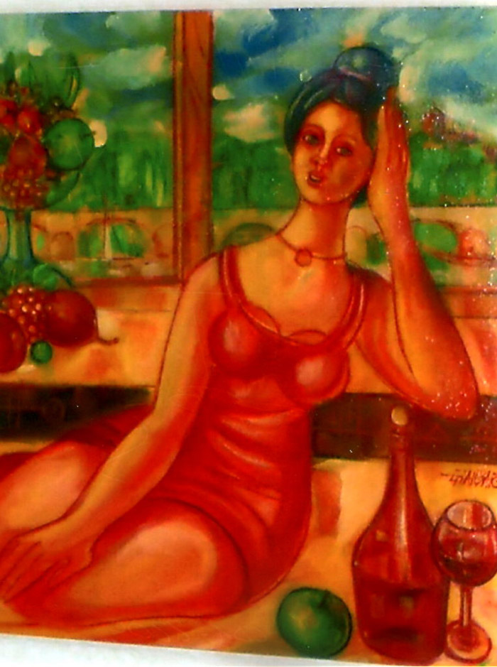 Giambar. " Attesa"Olio su tela applicata su tavola cm 45x45.Aut.L'alfiere Arte