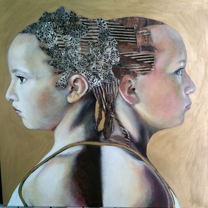 Maribel Moreno "Luna a nul"Olio e collage su tela cm 50x50.Aut.dell'Artista su foto