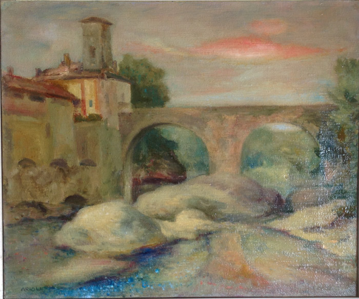 Lotto 84 | Fioravante Arioli "Ponte antico" olio su tela cm 50x60 Firma in basso a...