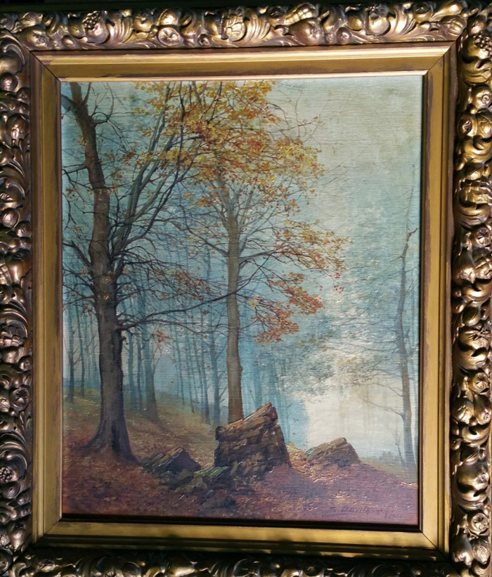 S.Acquaviva ,"Paesaggio boschivo" 1920.Olio su tavola cm 61x50 opera in cornice d'epoca