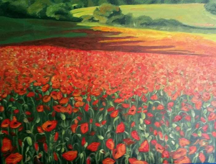 Georgescu Magdalena, Campo di papaveri " Olio su tela Cm...