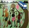 George Lilanga "Villaggio La corriera" smalti su masonite cm 61x61...