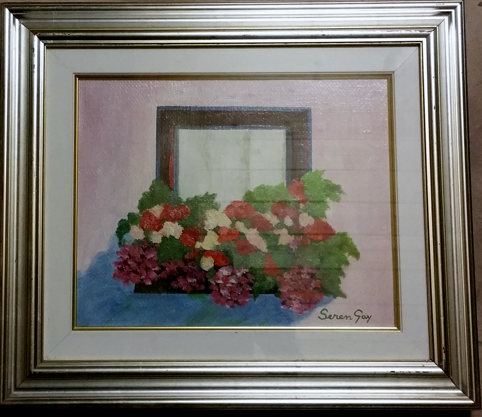 Domenico Serengay .balcone fiorito" Acrilici su tela cm 24x30,Autentica dell'artista sufù foto
