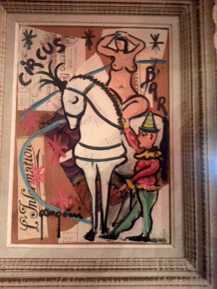 Gangemi. "Circus " Tecnica mista su tavola cm 30x40.Autentica L'alfiere arte su foto.Opera corredata di cornice messa dall'artista