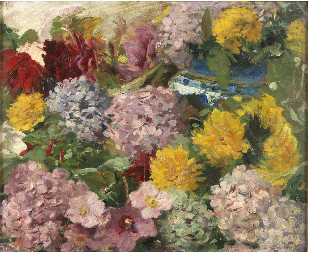 PITTORE FINE XIX SECOLO Fiori Olio su cartone cm 45 x 55 Non firmato Lungo...