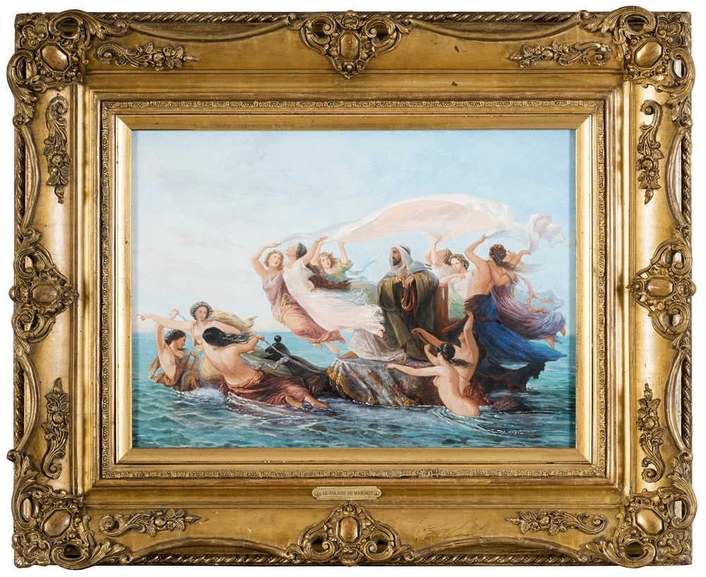 PITTORE ORIENTALISTA XIX SECOLO Barca con figure - Tempera su cartone cm 46 x...