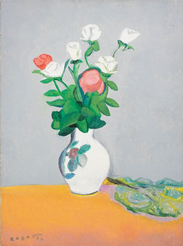 Giuseppe Cesetti Tuscania (Vt) 1902 - 1991 Vaso di fiori n. 4, 1980-82 Olio su tela, cm. 81x60 Firma in basso a sinistra: Cesetti. Al verso sulla tela: timbro Galleria Russo, Roma. Certificato su foto Fidesarte, Mestre. Esposizioni: Giuseppe Cesetti, Roma, Galleria F. Russo, 26 gennaio - 16 febbraio 1989, cat. tav. 40, illustrato. Bibliografia: Rossana Bossaglia, Paolo Levi, Catalogo generale dei dipinti di Giuseppe Cesetti I° repertorio 1923-1989, Giorgio Mondadori & Associati, Milano, 1989, p. 142, n. 80-82/2.