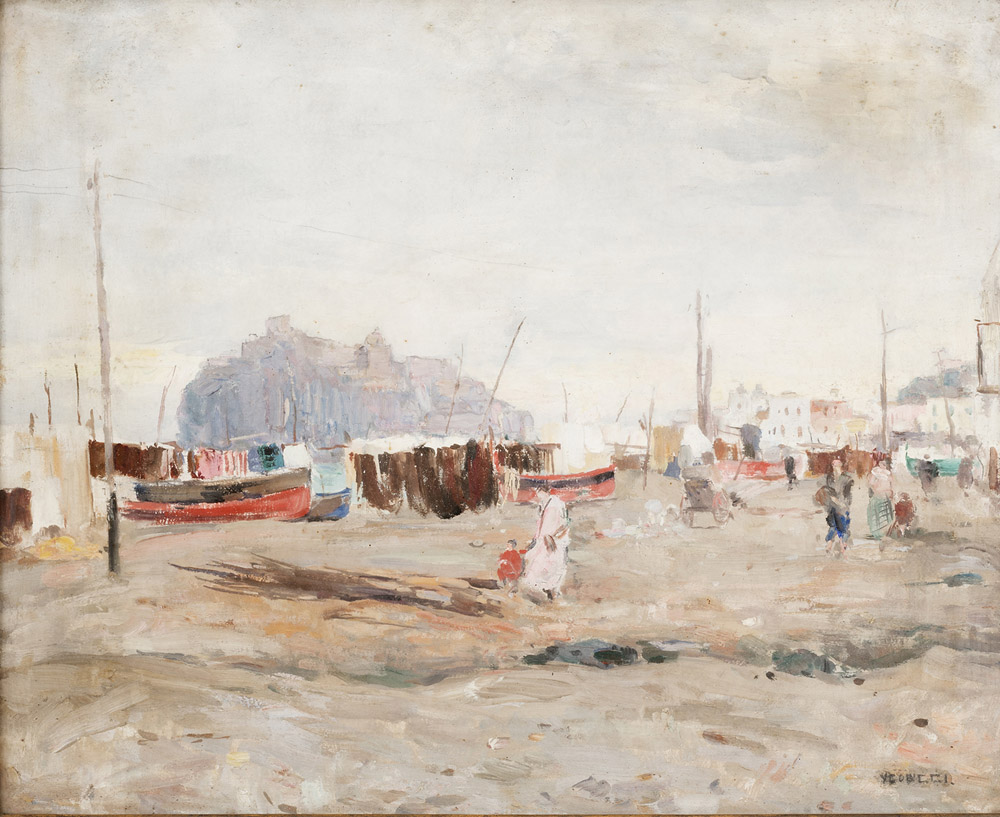 VINCENZO COLUCCI Ischia 1898 - Lacco Ameno 1970 Veduta napoletana Olio su tela cm 50 x 60 Firma in basso a destra
