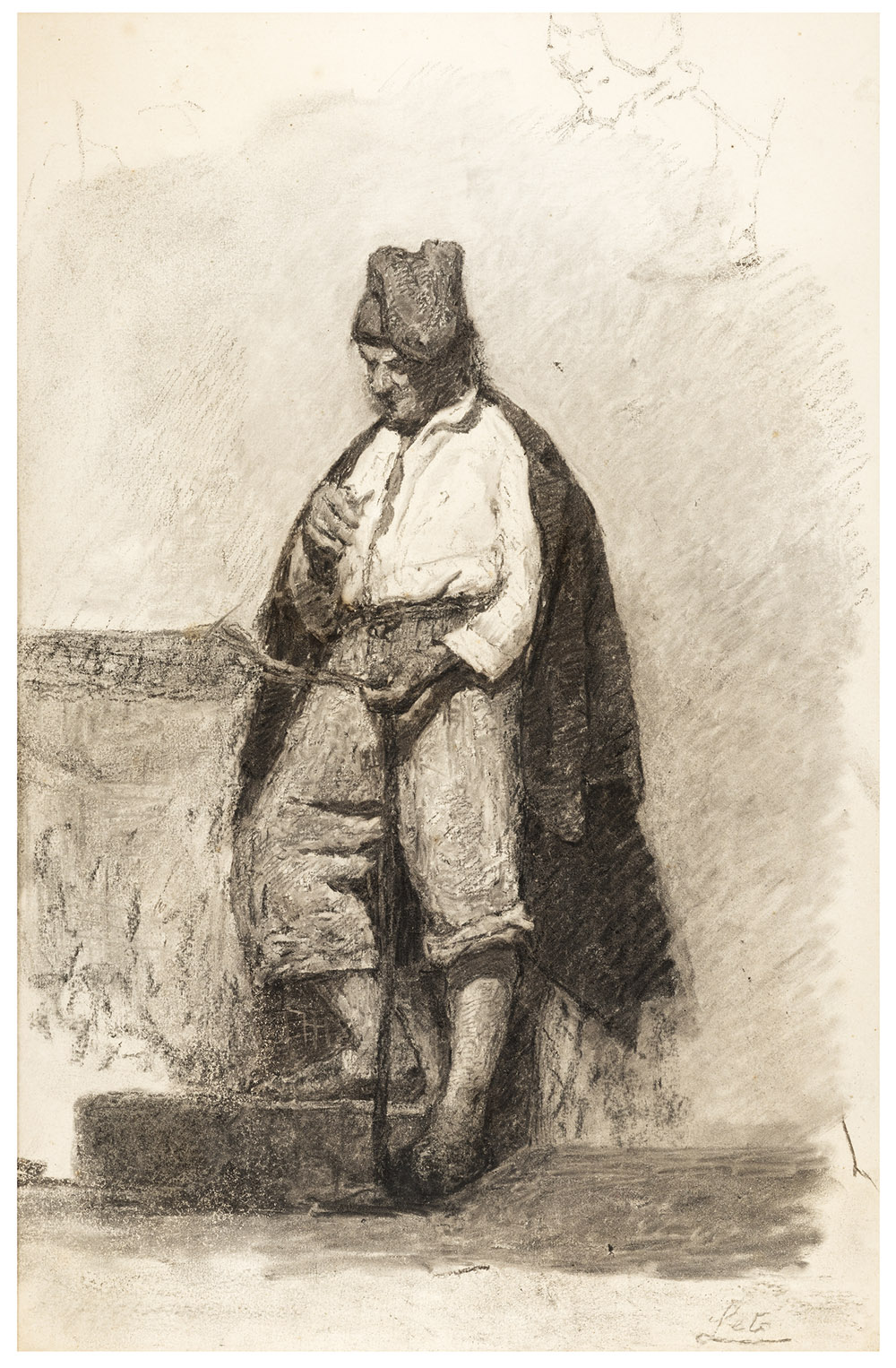 ANTONINO LETO Monreale 1844 - Capri 1913 Pescatore Disegno a matita e matita grassa su carta cm 51 x 33 Firma in basso a destra