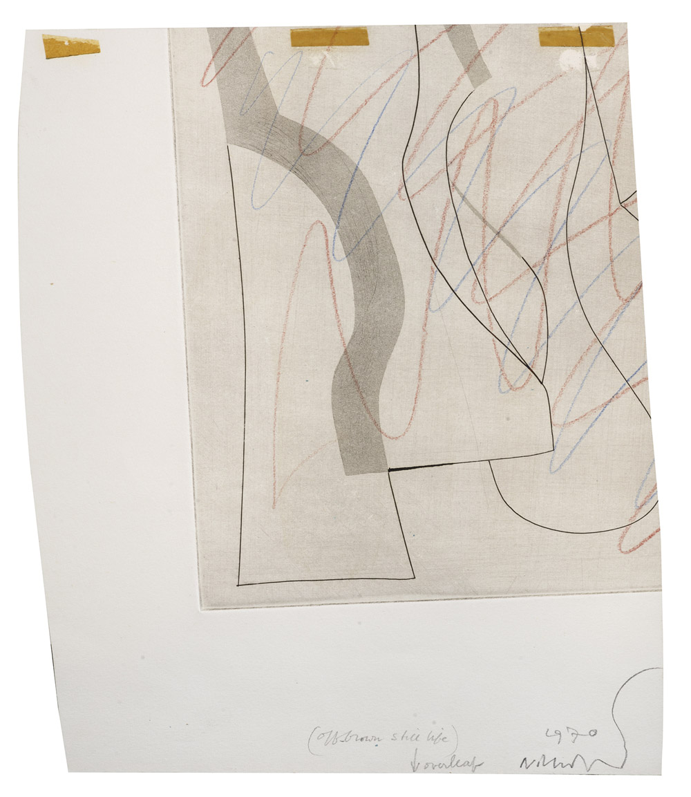 BEN NICHOLSON Denham 1894 - Hampstead 1982 Off-brown still life, 1970 matita...