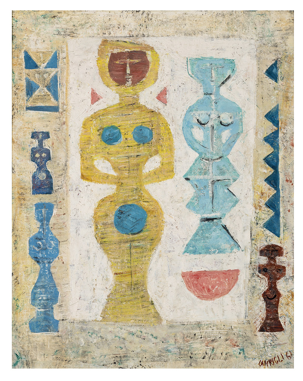 MASSIMO CAMPIGLI Berlino 1895 - Saint Tropez 1971 Figure, 1961 Olio su tela cm 81 x 65 Firma e data in basso a destra Provenienza Galleria Carini, Milano, etichetta al retro si allega autentica su foto della galleria Esposizioni Milano 1968, tav. 23