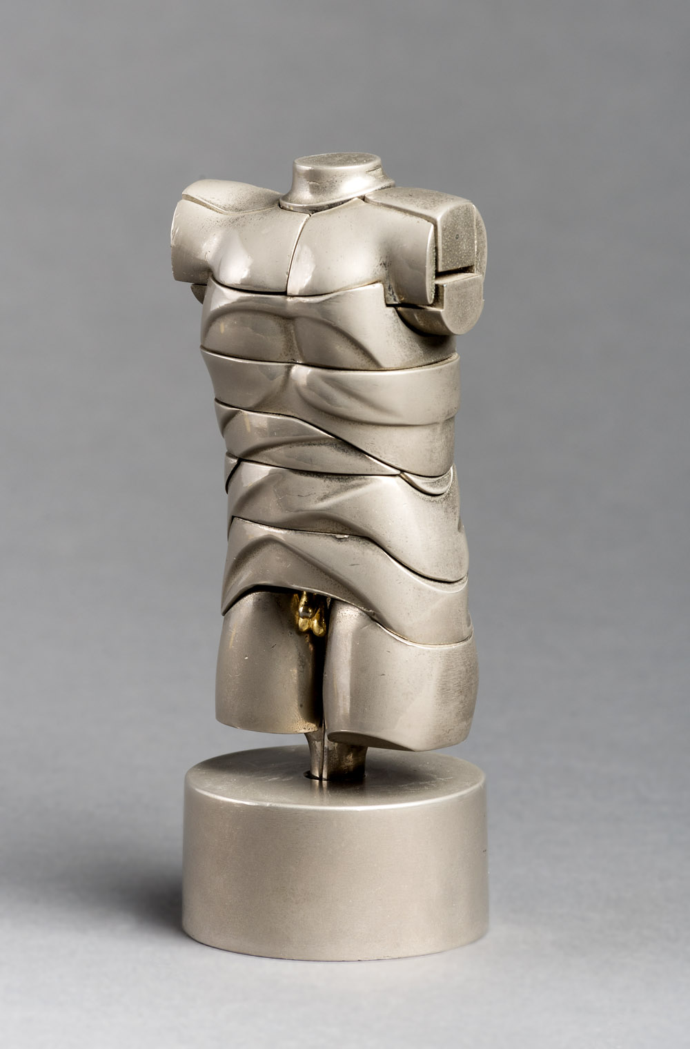 MIQUEL ORTIZ BERROCAL Villanueva de Algaidas 1933 Mini David, 1968 Scultura scomponibile in metallo nichelato, ex. 9141/9500, h. cm. 14,5 Firma sulla spalla sinistra Completo della sua scatole con spiegazioni sul come smontarlo