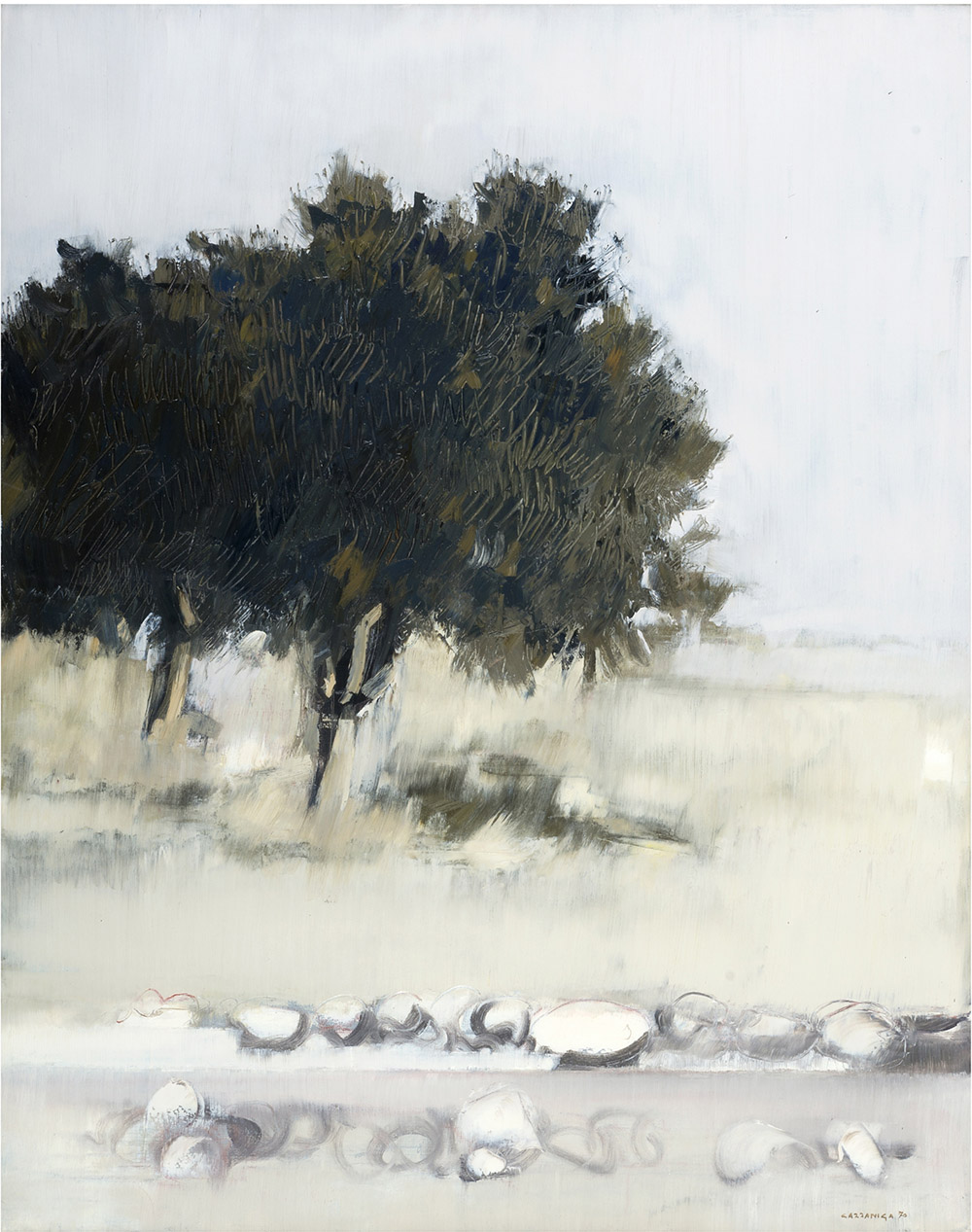 GIANCARLO CAZZANIGA Monza 1930 - 2013 Ricordo d'estate a Portonovo, 1970 Olio su tela cm 92 x 78 Firma e data in basso a destra Firma, data e titolo al retro Provenienza Galleria del Milione, Milano, etichetta e timbro al retro col n. 11756, Galleria