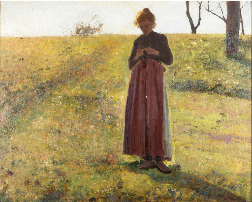 CARLO CORSI Nizza 1879 - Bologna 1966 Nel campo, 1920 ca. Olio su tavoletta in cartone cm 90 x 70 Firma in basso a destra Provenienza Studio d'Arte Grafica Contemporanea di Antonino Randazzo, Bologna