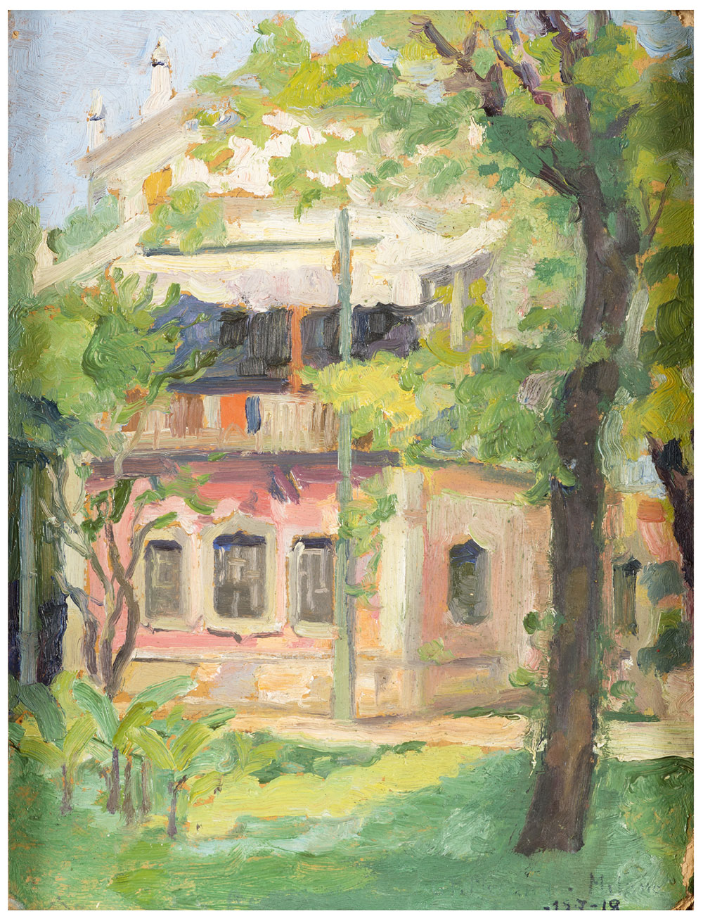 GIOVANNI FERRUCCIO MORANDO Italia XIX-XX secolo Monte Merlo, 1918 Olio su cartone cm 33 x 23 Firma e data in basso a destra