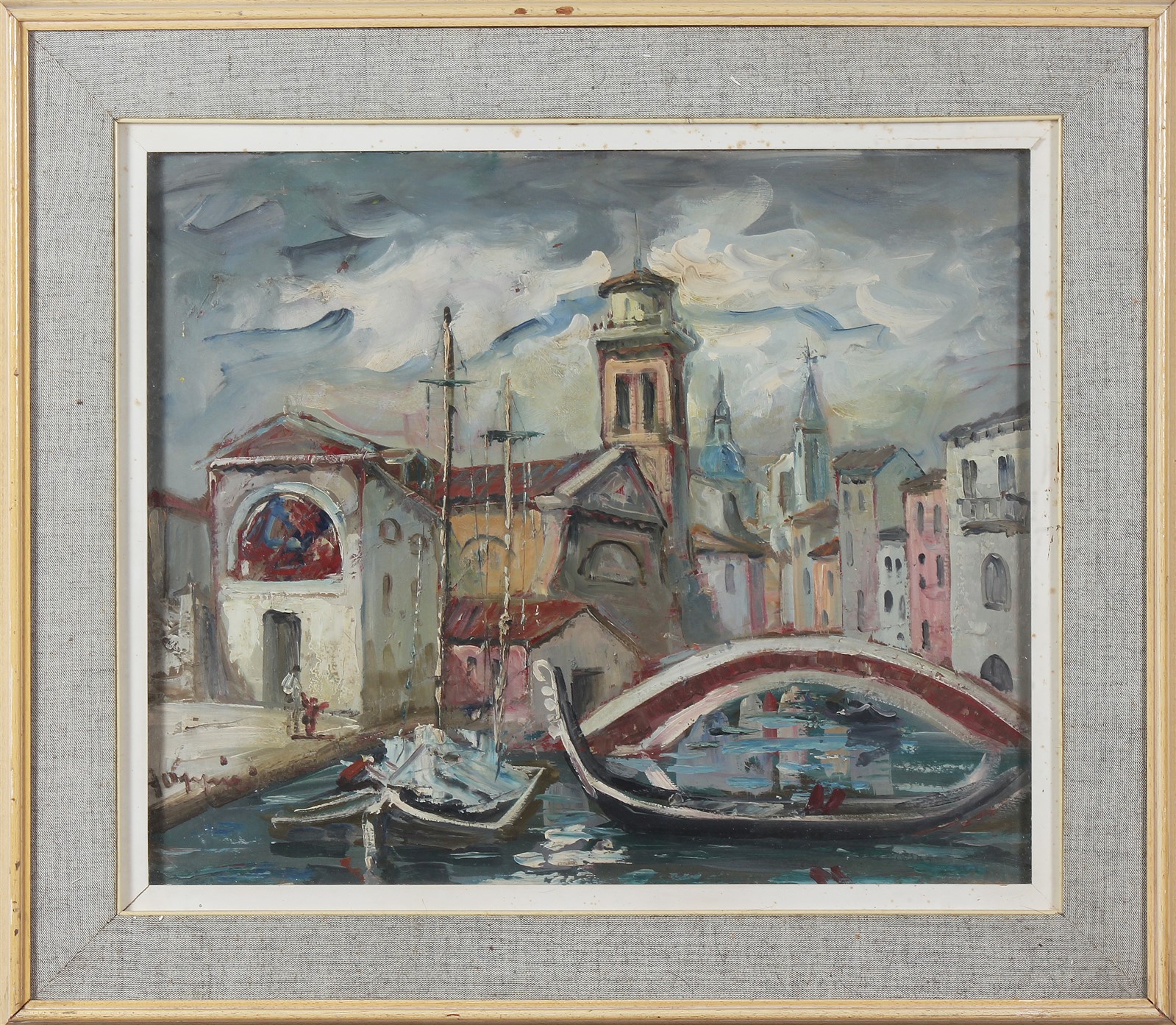 OPPICI ALDO (1908 - 1985) Venezia. Olio su masonite. Cm 62,00 x 50,00. Firma in basso a sinistra. Al retro firma e titolo. Cornice presente